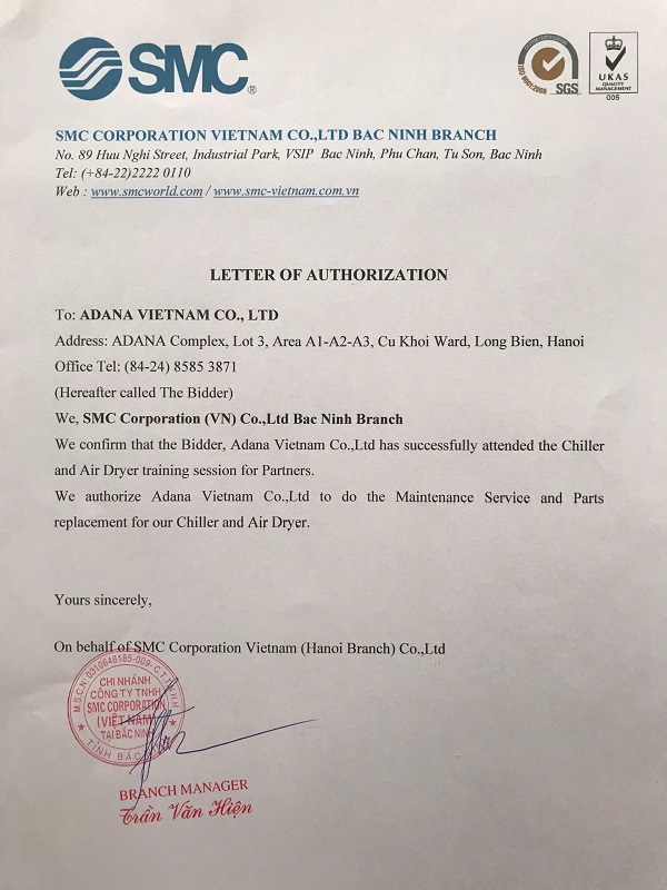 ADANA Việt Nam cung cấp độc quyền dịch vụ sửa chưa máy làm mát chiller SMC và Orion hơn 10 năm qua. Chúng tôi là đơn vị duy nhất cung cấp dịch vụ sửa chữa và được hãng SMC và Orion đào tào và chứng nhận.