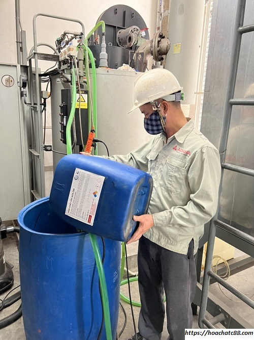 Hóa chất mà chúng tôi sử dụng: đó chính là hóa chất tẩy rửa C88. Hóa chất tẩy rửa C88 có đặc điểm là hóa chất chuyên dụng tẩy rửa cáu cặn trong các thiết bị như nồi hơi, lò hơi, chiller, bình ngưng, dàn nóng dàn lạnh….