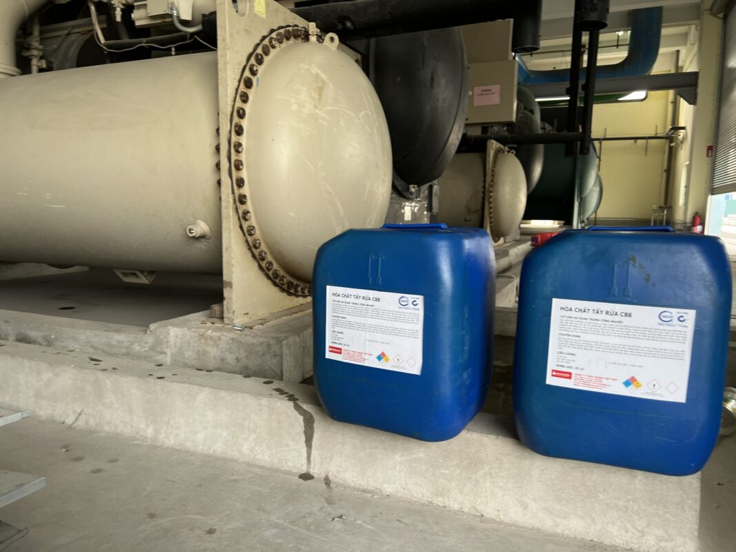 Hệ thống chiller, boiler, tháp giải nhiệt sau thời gian dài sử dụng, hoạt động, công suất hoạt động làm việc của thiết bị máy sẽ bị giảm do cáu cặn bán bẩn. Để có thể loại bỏ sạch hoàn toàn cáu cặn bẩn cứng đầu, cần có một loại hóa chất chuyên dụng để có thể tẩy rửa sạch sẽ trả lại trạng thái ban đầu cho thiết bị máy